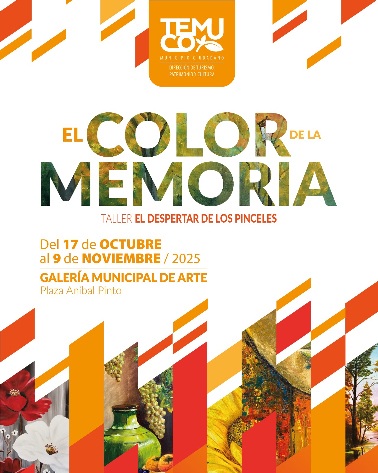 La décima exposición del 2025 ya fue inaugurada en la Galería de Arte de la Plaza Aníbal Pinto de Temuco. Se trata de la muestra de pintura “El color de la memoria”, iniciativa gestada por el taller de personas mayores “El despertar de los pinceles”, que reúne obras de mujeres mayores que, a través de su arte, expresan su historia, emociones y vitalidad.