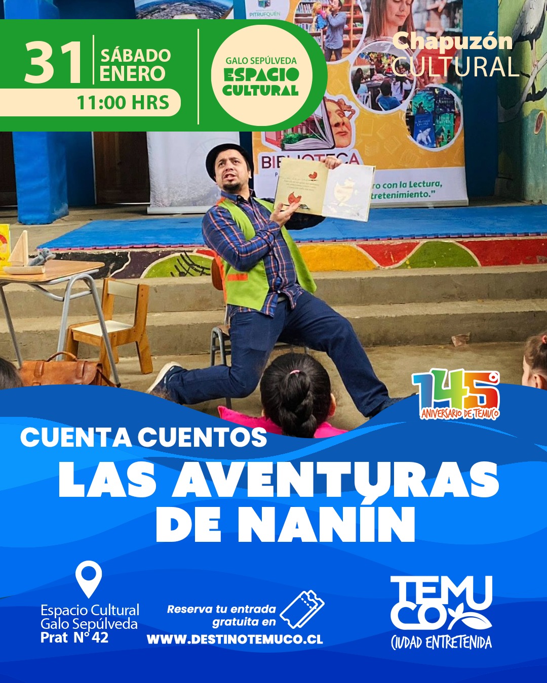 Temuco continúa celebrando sus 145 años con arte, cultura y actividades para toda la familia. Este verano, la Municipalidad de Temuco, a través de su Dirección de Turismo, Patrimonio y Cultura, presenta una nueva edición del Chapuzón Cultural, un ciclo de espectáculos gratuitos pensado especialmente para niñas, niños y sus familias. Las funciones se realizan todos los sábados a las 11:00 horas en el Espacio Cultural Galo Sepúlveda, ubicado en Prat Nº 42, con una programación que mezcla teatro, títeres, música y circo: el panorama perfecto para disfrutar en familia las mañanas de verano.