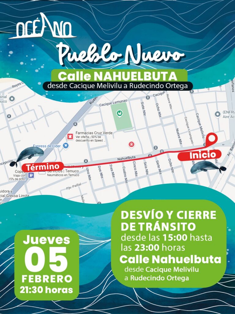 En el marco de las celebraciones por el aniversario 145 de la ciudad de Temuco, la Municipalidad a través de su Dirección de Turismo, Patrimonio y Cultura ha anunciado el regreso del pasacalle de gran formato “Océano. Los peces inundan la calle”. Tras el éxito de su primera edición en 2025, la propuesta artística vuelve este verano con una renovada puesta en escena, reafirmando su compromiso con la cultura, el arte en el espacio público y la conciencia ambiental.