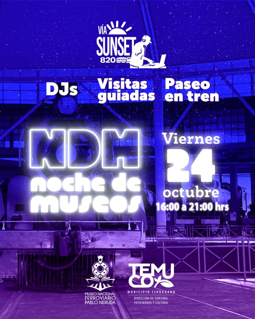 El Museo Nacional Ferroviario Pablo Neruda se sumará este viernes 24 de octubre a una nueva edición de la Noche de los Museos, con una programación gratuita y abierta a toda la comunidad. La jornada es organizada por la Dirección de Turismo, Patrimonio y Cultura de la Municipalidad de Temuco, y busca ofrecer una experiencia enriquecedora, especialmente pensada para el disfrute de familias, jóvenes y visitantes.