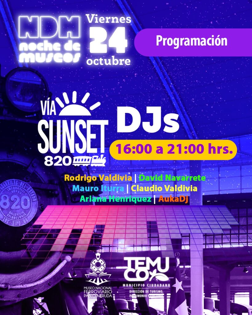 La programación incluye además un taller introductorio al arte DJ, ideal para quienes deseen acercarse a esta disciplina musical contemporánea. Como cierre, se ofrecerá un vibrante sunset con DJs en vivo, con la participación de reconocidos artistas locales como AukaDJ, DJ Narcoti-k, David Navarrete (Metrónomo), Mauro Iturra, Rodrigo Valdivia y Claudio Valdivia, que darán vida a una noche inolvidable en la capital de La Araucanía.