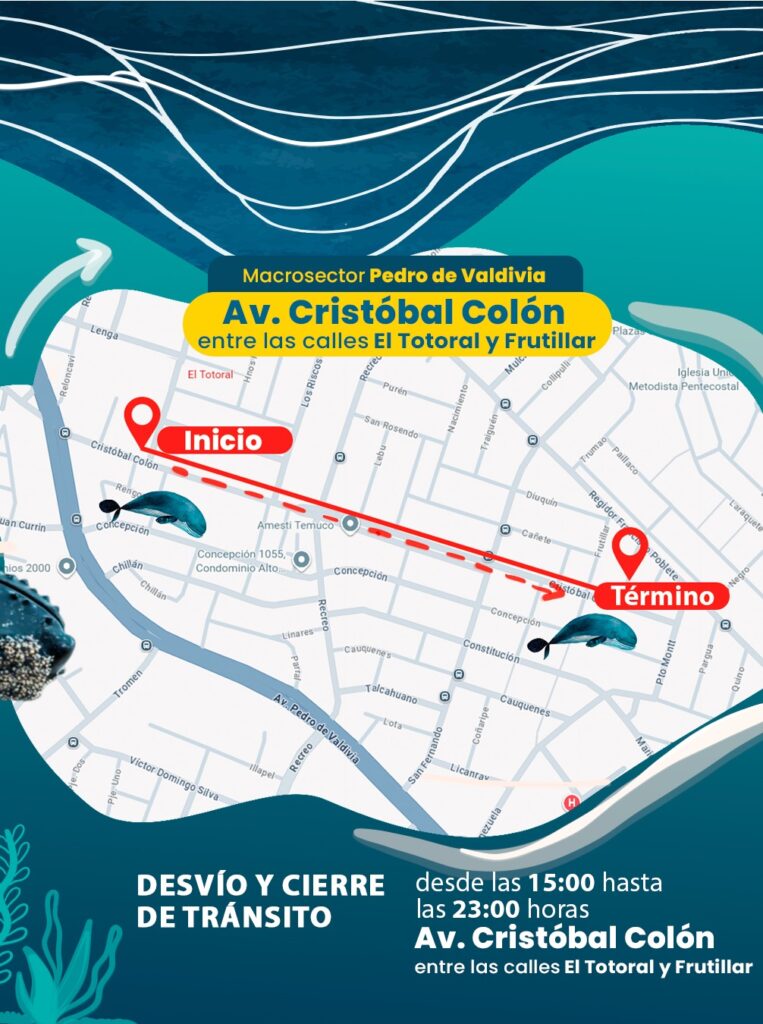 El macrosector Pedro de Valdivia será escenario del gran pasacalle “Océano. Los peces inundan la ciudad”, un espectáculo artístico gratuito que transformará las calles en un océano vivo. Con una imponente ballena de 12 metros y peces gigantes, el desfile comenzará a las 21:30 horas, tras un ambiente familiar y festivo.