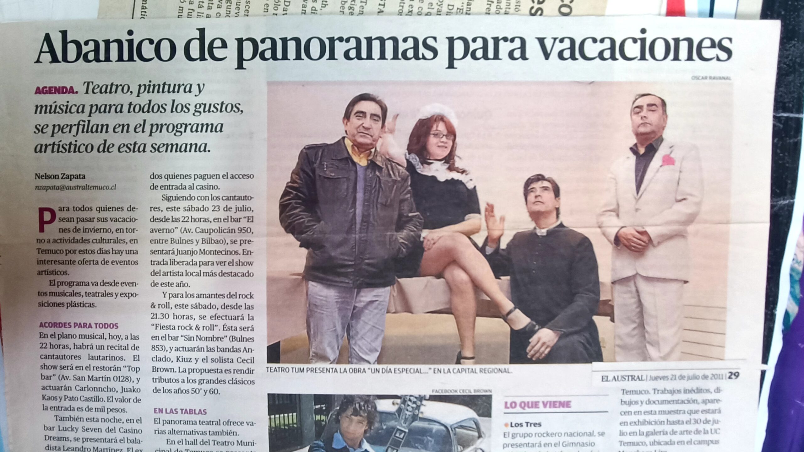 “Nací teatralmente el 18 de junio de 1964 en la "antigua" sala de teatro de la Biblioteca Municipal, desde ese momento no me he desvinculado del teatro hasta el día de hoy. Con ese taller, conocí a muchas personas, aprendí, me formé y recorrí muchos festivales y salas de teatro a lo largo de todo el país”.